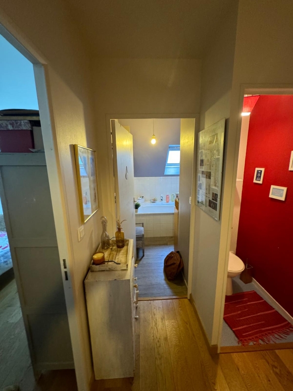 Découvrez la métamorphose de cette salle d’eau entièrement rénovée, désormais pensée pour accueillir également les WC. Située dans une maison, cette rénovation a permis de créer un espace plus cohérent, fonctionnel et confortable, tout en respectant l’esprit du lieu.