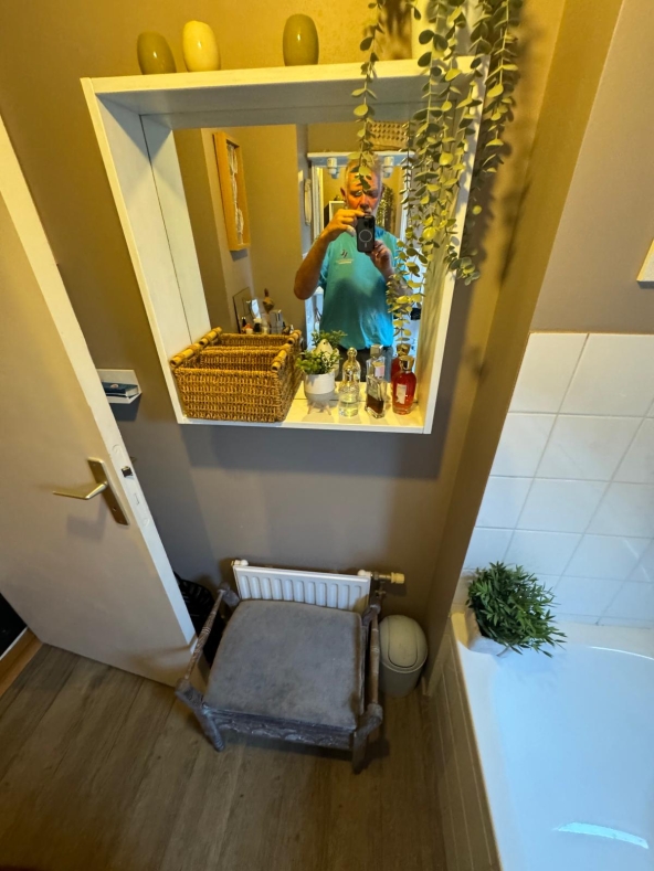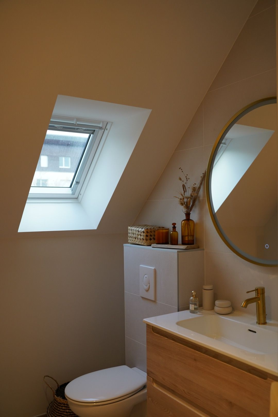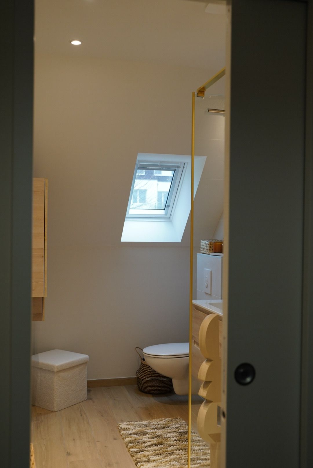 Les clients souhaitaient repenser entièrement leurs sanitaires, composés à l’origine de deux espaces distincts mais très réduits : une salle d’eau et des WC séparés. Leur besoin principal était de gagner en confort et en fonctionnalité, tout en apportant davantage de luminosité et une ambiance plus chaleureuse.