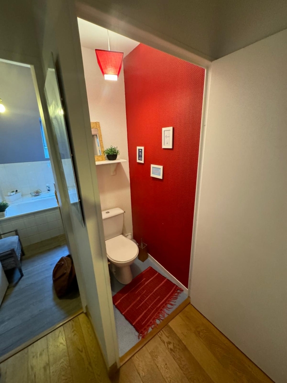 Avant rénovation, les toilettes occupaient un espace important, ce qui constituait une contrainte majeure dans l’aménagement global. La salle d’eau, quant à elle, manquait de confort et de fluidité, en raison de ses dimensions très limitées.